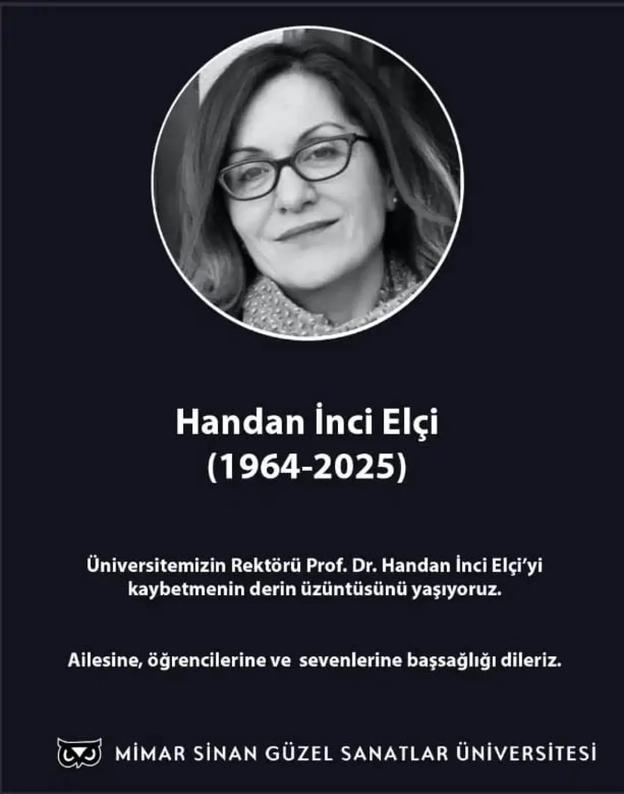 Mimar Sinan Güzel Sanatlar Üniversitesi, rektörü Prof. Dr. Handan İnci Elçi'nin vefatını üzüntüyle duyurdu. Üniversiteden yapılan açıklamada, “Üniversitemizin rektörü Prof. Dr. Handan İnci Elçi’yi kaybetmenin derin üzüntüsünü yaşıyoruz. Ailesine, öğrencilerine ve sevenlerine başsağlığı dileriz” ifadelerine yer verildi.