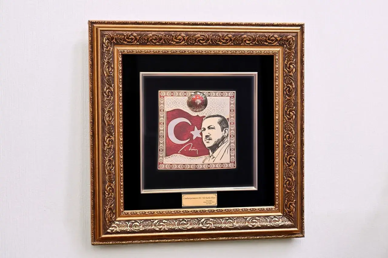 Hediyedeki detaylar arasında, Bahçeli’nin “Cumhuriyetimizin 102’nci yılı kutlu olsun” mesajı da yer aldı. Tablo, hem Cumhuriyet’in birlik ve beraberlik ruhunu yansıttı hem de iki lider arasındaki güçlü siyasi dayanışmanın sembolü olarak yorumlandı.
