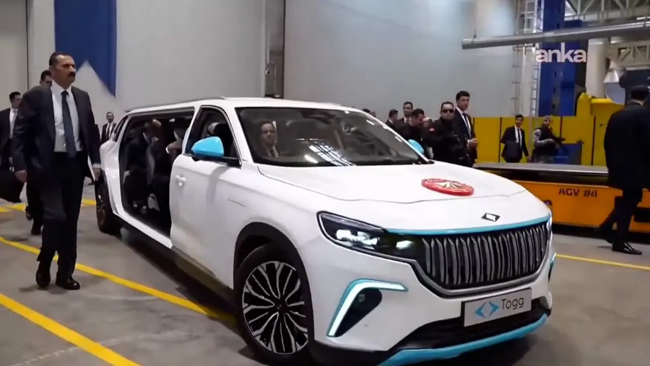 Erdoğan, törene özel yapım beyaz renkli ve limuzin tarzında uzatılmış gövdeye sahip TOGG aracıyla geldi. Araçta Cumhurbaşkanlığı forsunun yer aldığı gözlendi; direksiyon başında BMC Yönetim Kurulu Başkanı Fuat Tosyalı, ön koltukta ise Cumhurbaşkanı Erdoğan oturdu.
