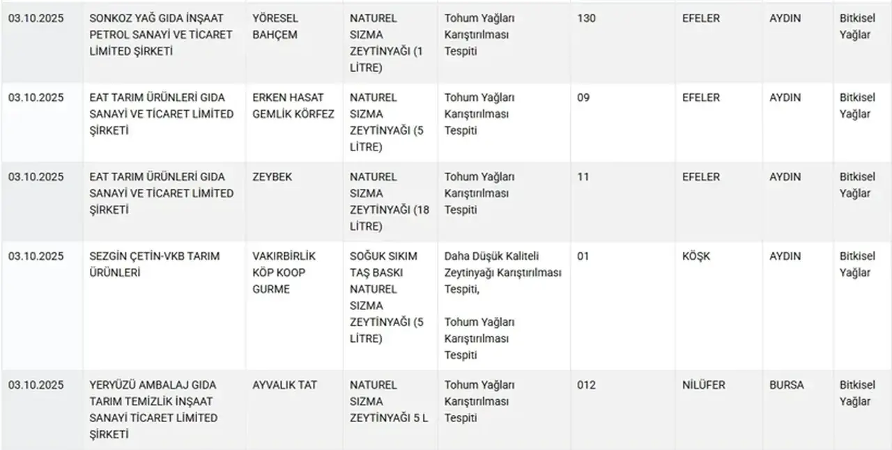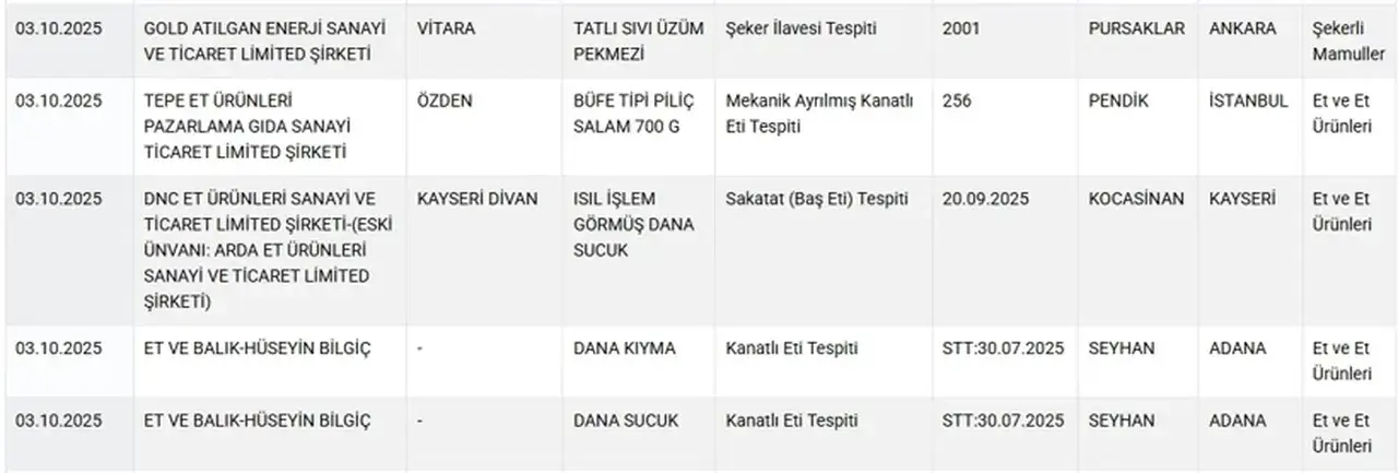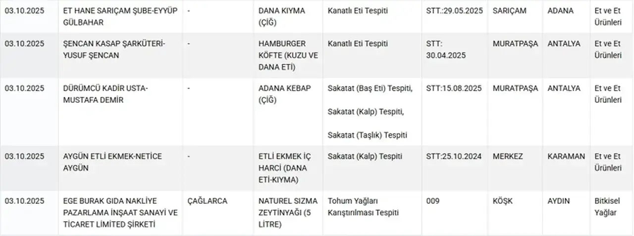 Tarım ve Orman Bakanlığı, son denetimlerde sağlığı tehlikeye atabilecek taklit ve tağşişli gıda ürünlerini açıkladı. Yapılan kontrollerde, dana kıyma ve sucukta kanatlı eti, Adana kebapta baş ve kalp eti, bazı zeytinyağlarında tohum yağı karışımı ve süzme balda taklit/tağşiş tespit edildi. Bu tür gıdalar, halk sağlığını tehdit edebilir ve tüketiciyi yanıltabilir.