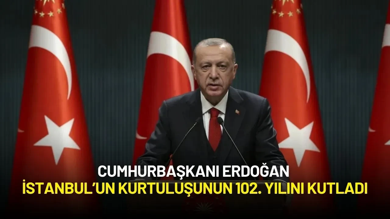 Cumhurbaşkanı Recep Tayyip Erdoğan, İstanbul'un düşman işgalinden kurtuluşunun 102. yıl dönümü dolayısıyla yaptığı paylaşımda, şehitlerimizin ve gazilerimizin fedakarlıklarıyla kazanan zaferin, milletin bağımsızlık ve özgürlük kararlılığı sayesinde elde edildiğini vurguladı.