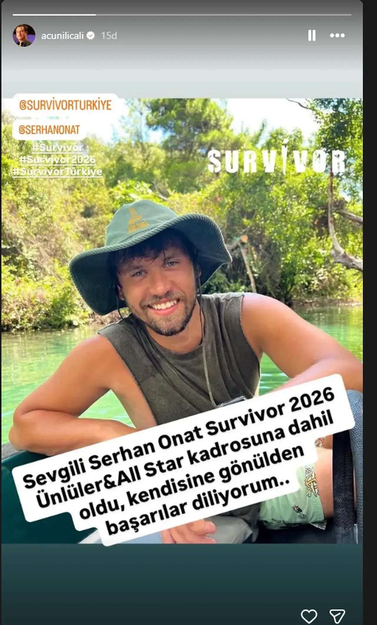 “Sevgili Serhan Onat Survivor 2026 Ünlüler All Star kadrosuna dahil oldu, kendisine gönülden başarılar diliyorum.”